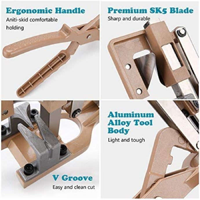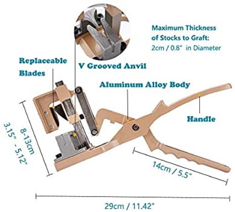 Pogodno za cijepljenje grana voćaka čiji su promjeri između 5 i 20 mm; uključen je jedan set zamjenjive oštrice za rezanje u obliku slova V.