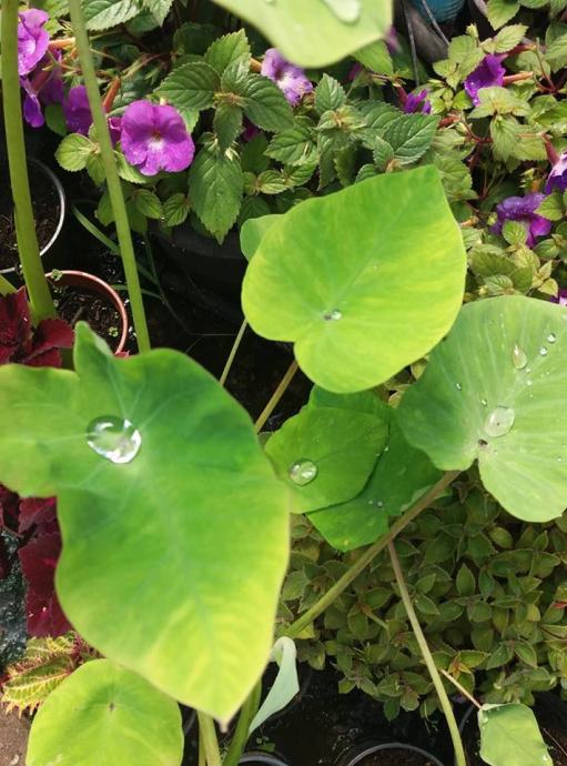 U ovu grupu spadaju i dobro poznati adami. Ovo je jedna manja vrsta, prekrasne nježne zelene boje i lista koji na neobičan način skuplja kapljice vode. Za održavanje je lagan, kao i naš adam. Jako je dekorativan, daje vrtu tropski izgled. U zemlji ima gomoljčić...tijekom godine od jednoga gomolja nastane ih nekoliko, tako da se jako brzo razmnozava. Zimi se gomolj može spremiti bilo gdje u taman i hladan prostor.