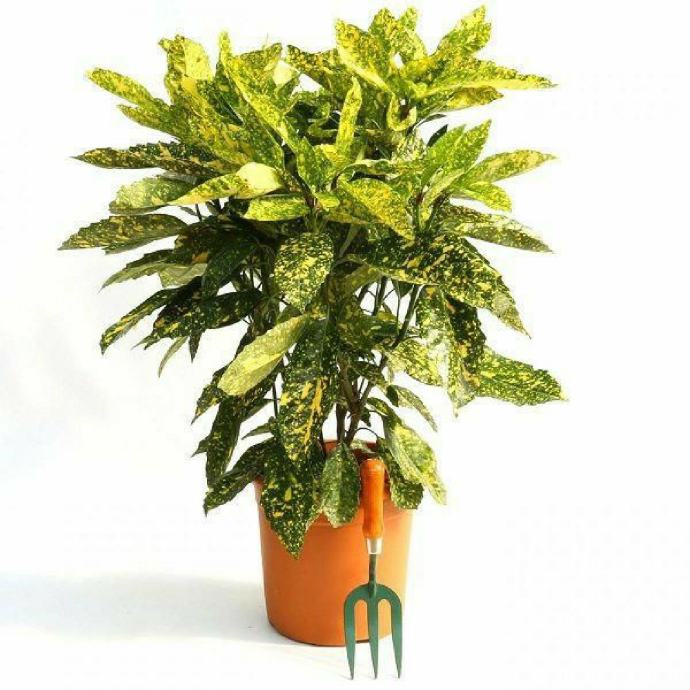 Aucuba japonica je zimzelena biljka, vrlo zahvalan grm, sjajnog kožastog lišća s bijeložućkastim mrljama.