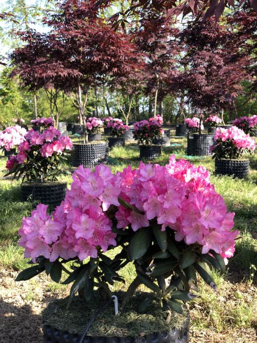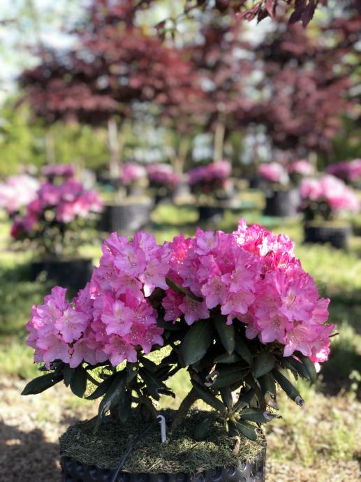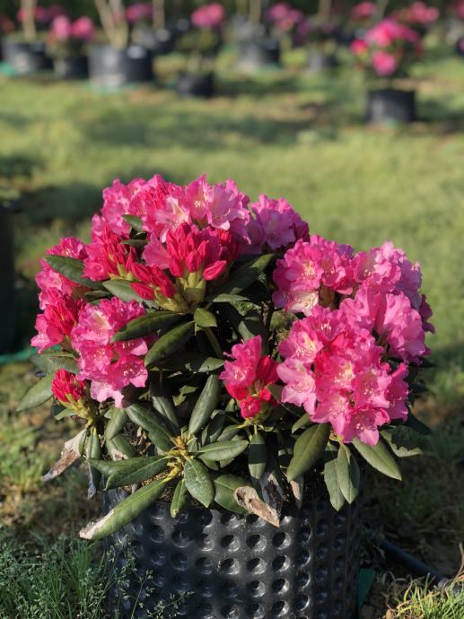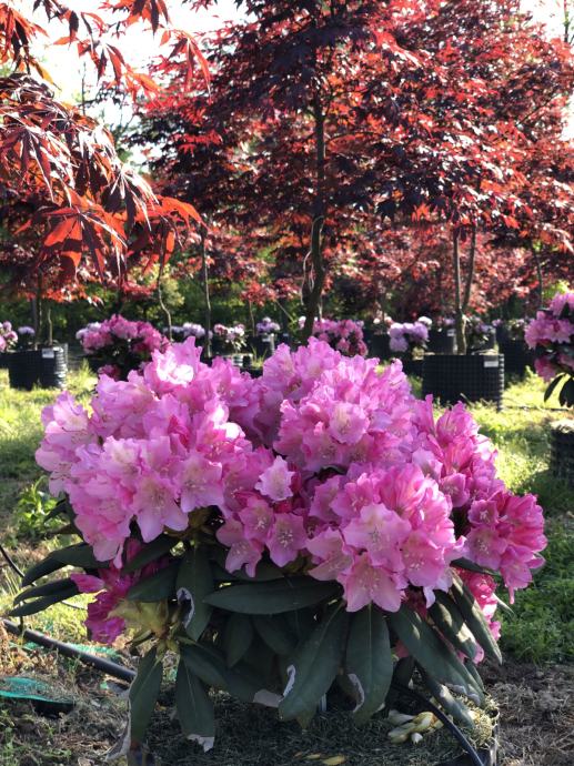 Opis: Rhododendron yakushimanum 'Kalinka' je kompaktan, zimzeleni grm , cijenjen zbog guste, kupolaste forme, sitnog sjajnog lišća i obilnih, nježno obojenih cvjetova. Pogodan je za male vrtove, kamenjare, šumske rubove i sadnju u posudama. Obično naraste oko 50–100 cm visine i širine; sporog do umjerenog rasta, zadržava uredan oblik bez potrebe za snažnom rezidbom. Cvjetovi: Grozdovi lijevakastih cvjetova; boja varira ovisno o klimi i tlu, obično nježno ružičasta do blijedo ružičasta. Najbolje uspijeva na mjestima s jutarnjim suncem i poslijepodnevnom sjenom ili u polusjeni; previše jakog sunčevog zračenja može oštetiti lišće. Tlo: Preferira kiselo, dobro drenirano tlo bogato organskom tvari (pH približno 4,5–6,0); ne voli zadržavanje vode. Zalijevanje: Redovito zalijevanje tijekom sušnih razdoblja, malčiranje pomaže zadržavanju vlage i štiti korijen. Održavanje: Nisko — uklanjanje uvelih cvatova pomaže urednom izgledu; lagana oblikovna rezidba nakon cvatnje može se primijeniti po potrebi. Štetočine i bolesti: Općenito otporan uz pravilnu njegu; može biti osjetljiv na trulež korijena u zbijenim, loše dreniranim tlima te na uobičajene štetnike rododendrona.