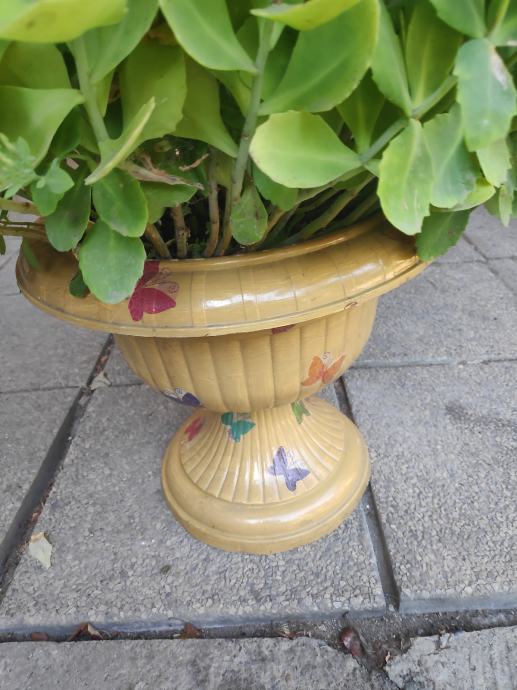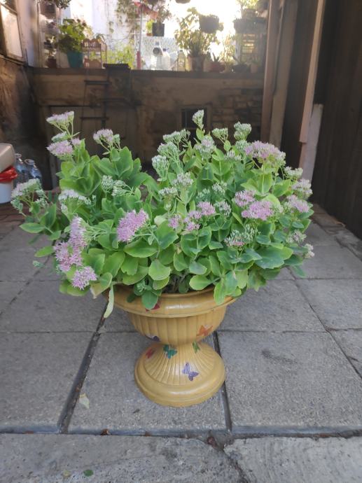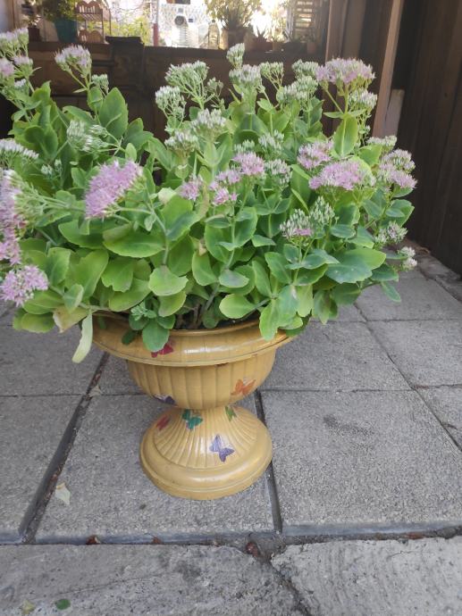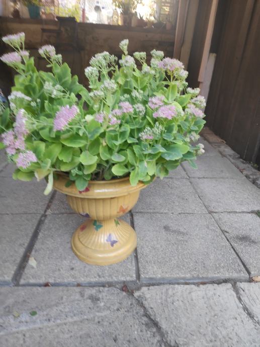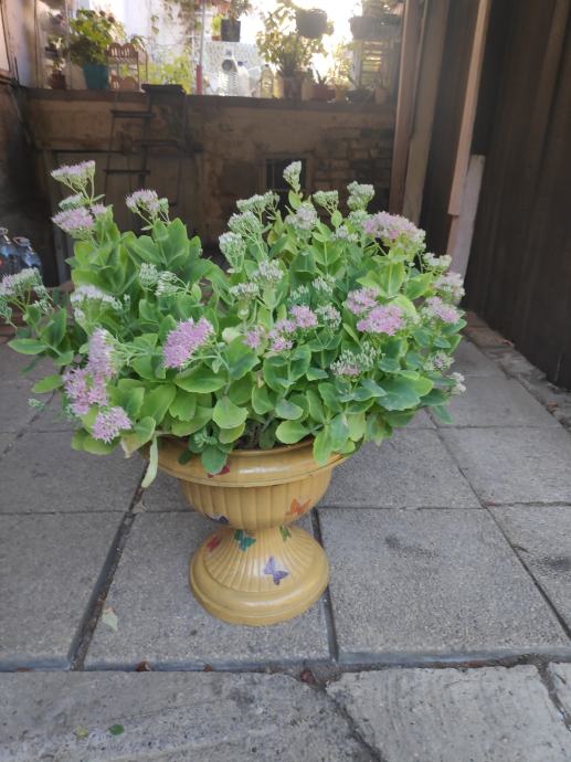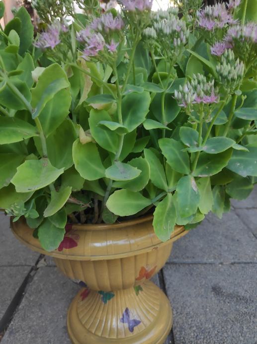 Sekulent,trajnica (debela koka) prekrasan cvijet u ukrasnoj tegli ukrasenoj sa dekupaz tehnikom,lijep ukras za vas balkon,terasu ili dvoriste.Cvijet se lako uzgaja,otporan je na vrucinu ali i na hladnoću,listovi su mu ljekoviti kao i sto su od cuvarkuce....091 9571089