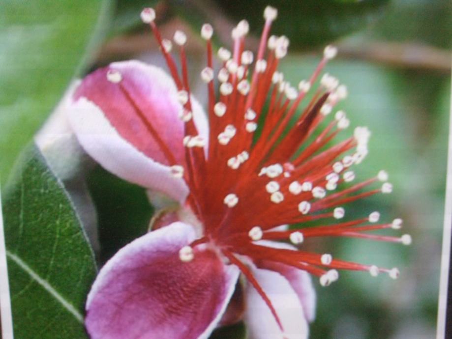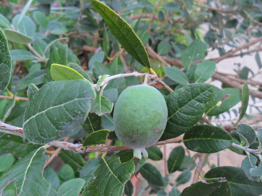 Feijoa cvjeta u svibnju-lipnju, a plodovi dozrijevaju krajem listopada.Okusom su na ananas, bananu i jagodu zajedno.Plodovi su puni vitamina c i joda.