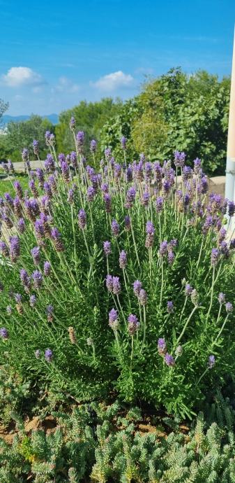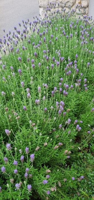 Francuska lavanda je zimzeleni grm visine do 60 cm. Smatra se da je dobila naziv Lavandula dentata po svojim nazubljenim listovima grubog oblika. Francusku lavandu karakteriziraju i veliki ljubičasti cvjetovi.
