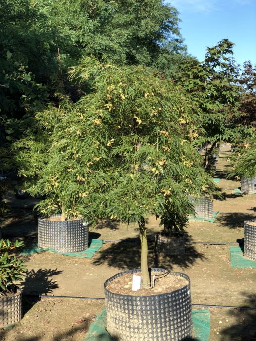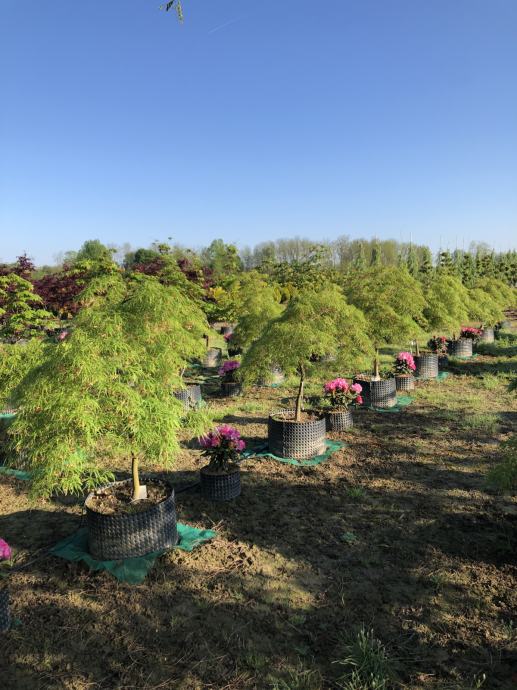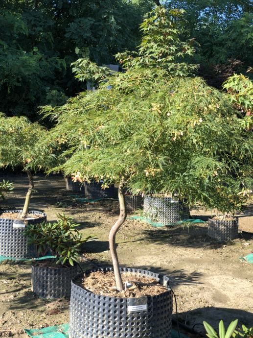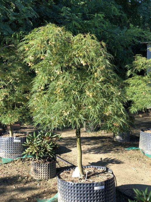 OPIS: Acer palmatum 'Viridis' je patuljasti, dobro razgranati japanski javor niskog i raširenog habitusa sa snažnim kaskadnim granama koje s vremenom formiraju kupolasti primjerak. Nježno i čipkasto lišće poput paprati svjetlo je zeleno tijekom proljeća i ljeta i lijepo se ističe u krajoliku. U jesen se lišće oboji do zlatnožute boje s nijansama naranđaste boje. Zimi se elegantno uvijene grane posebno ističu tijekom jutarnjih mrazeva, sa injem ili snijegom na njima. Ovaj japanski javor je prekrasan izbor za terase, japanske i gradske vrtove. Posadite ga na blago zaštićenom mjestu i izbjegavajući teška tla natopljena vodom Traži malo održavanja, ako je orezivanje potrebno orežite ga u kasno ljeto, jesen ili zimu, izbjegavajte orezivanje u proljeće kada curi sok.