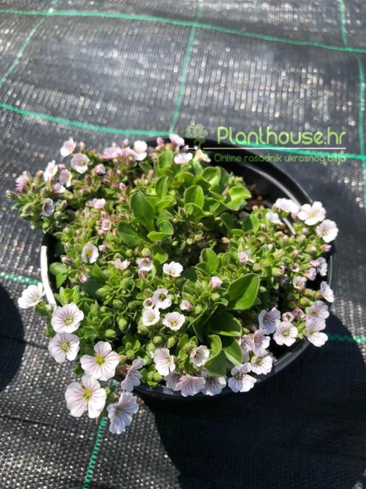 Ovu Gypsophilu nazivaju i zečje uši. Voli kamenjare i općenito kamene vrtove. Tvori niske grmiće sjajno zelenih listova i bijelo roza cvjetiće.