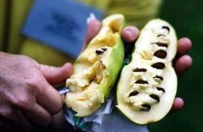 Pawpaw je izvrstan izvor hrane .Plod je najbolje jesti svjež kad je potpuno zreo,a tada je tropskog ,slatkog, sočnog okusa, te voćnog i cvjetnog mirisa. Kožica ploda je tvrda,zelena,a pri dozrijevanju postaje žuta i crvena. Kada plod prerežemo u unutrašnjosti se nalazi meso bijelo-žute boje meko i slatko, sadrži puno vitamina ,minerala,aminokiselina ,posebno kalcija i željeza,te veliku energetsku vrijednost. Unutar ploda nalaze se dva reda smeđih sjemenki koje su duge i do 3 cm. Sjemenke sadrže alkaloid koji je emetik ,ako se sjemenke žvaču utječu na probavu sisavaca ali ako se progutaju cijele samo prođu kroz probavni trakt. Listovi i grančice sadrže aktivnu tvar pod imenom annonaceous acetogenins-asimicin koji je antikancerogena tvar i koristi se za proizvodnju lijekova protiv raka i prirodnih (botaničkih)pesticida.