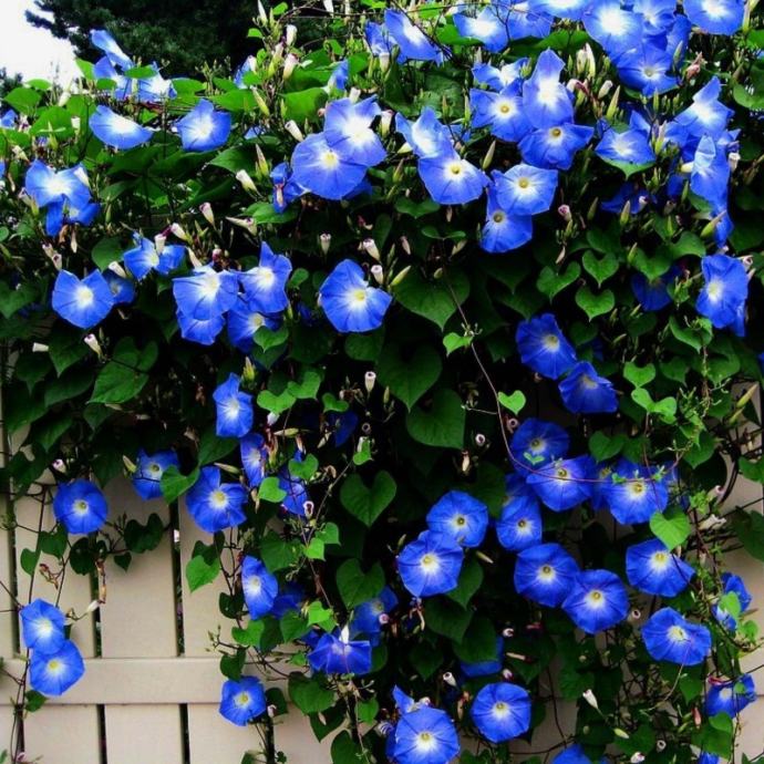 vjetovi su jednodomni – sadrže muške i ženske organe a izgledom podsjećaju na male trube jarkih psihodeličnih boja. Otvaraju se rano ujutro, a već krajem dana venu. Iako cvjetovi traju samo jedan dan brzo se stvaraju i uvijek ih ima jako puno. Nakon cvjetanja razvijaju sjemenku koja sadrži male količine komponenti koji mogu inducirati slabe halucinogene doživljaje. Sve u svemu, slak strateški postavljen u dvorištu ili na terasi odličan je zaklon od neželjenih pogleda, pogotovo krajem sezone kada dosegne svoju maksimalnu veličinu.