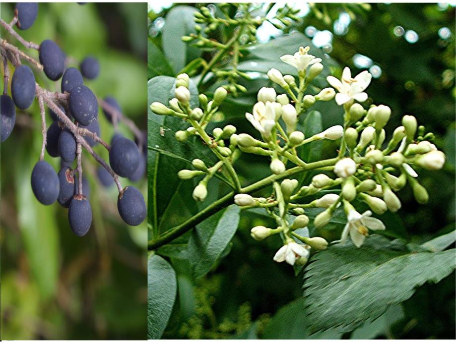 Cvjetovi dvospolni, mirisni, sastavljeni od četverodijelnog ocvjeća, dva prašnika i jednog tučka skupljeni u vjenčić. Vrijeme cvjetanja je lipanj-srpanj, plodovi su kuglaste, 6-8 mm velike, crne i sjajne bobice dozrijevaju u jesen prve godine.