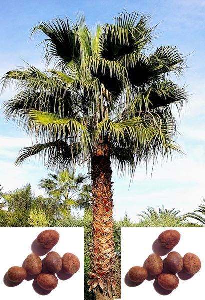 Končasta palma (Washingtonia filifera), Končasta vašingtonija, Kalifornijska lepezasta palma je jedna od najčešće sađenih palmi u suptropskim područjima. Potječe iz polupustinjskih predjela južne Kalifornije i jugozapadne Arizone (kanjon rijeke Colorado). Računa se da može podnijeti temperaturu do -12°C. Na temperaturama oko -8°C počinju oštećenja listova, ali ona može izdržati i nešto niže temperature (-15°C) zahvaljujući sposobnosti da preživi duga razdoblja bez lišća. Stablo ima slabo izražene usjeke, pri osnovi je nešto malo šire nego pri vrhu.