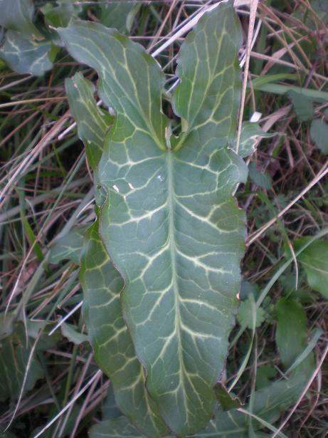 Višegodišnja zeljasta biljka kopljastih listova koja ima rizome.