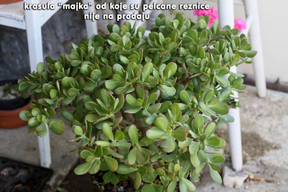 Velika "mama" je sa teglom visine 75 cm, od čega je tegla 25cm. Biljka je prekrasna i traži dosta prostora na polusjenovitom mjestu. Nju nudim za 95 eura.