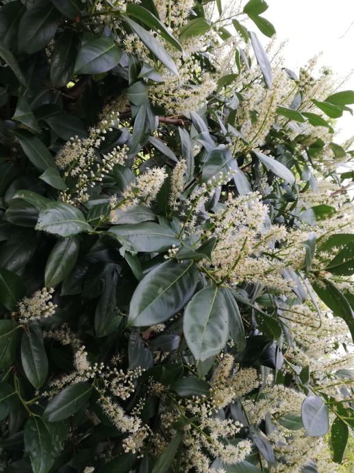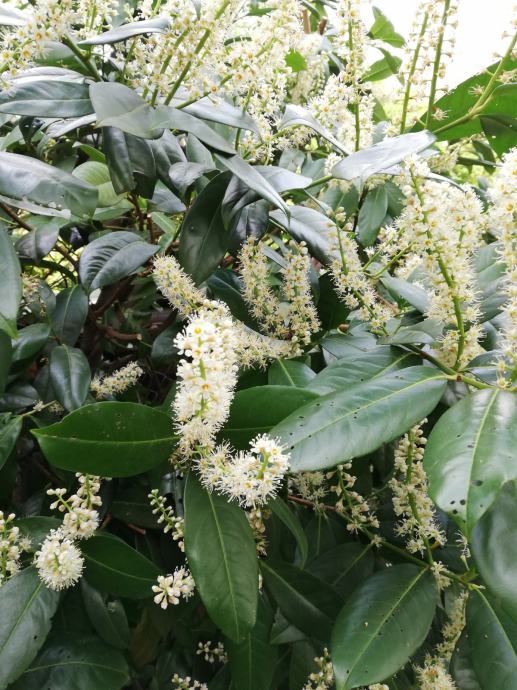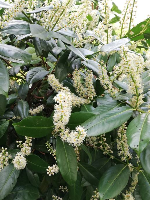 Sa slike, prekrasni bijeli cvjetovi i kožni listovi lovor višnje. Sadnice. 1kom/10eura