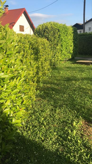 Sadnice LOVOR VIŠNJE jedne su od najljepših zelenih ograda ukrasnih grmova. Glavne krakteristike lovor višnje su stalno zelenilo ljeti i zimi, bez opadanja lišća, brzi rast (nakon što krene rasti), jednostavan i nezahtjevan uzgoj te izuzetno dekorativne mogučnosti uz praktičnu namjenu. Izuzetno dobro podnosi rezanje, čak što više to joj odgovara jer pojačava rast i gustoću sustava. Orezivanjem i oblikovanjem mogu se uz osobnu kreativnost formirati razni oblici i kompozicije koje svakako djeluju dekorativno i ne mogu ostati nezamiječene, no svakako i zbog održavanja grmolike forme za održavanje zelenog "zida". U slučaju zapuštanja, može se razviti u manje drvo, što je također i jedna od karakteristika lovor višnje, te i kao takva ima svoju primjenu. Netko želi baš takav rast! Osim navedenih dekorativnih mogučnosti, formiranje ograde ima itekako praktičnu ulogu,...kvalitetno ograđivanje prostora, zaštita od buke i prašine i u konačnici veliku uštedu financijskih sredstava. Sve to možete vidjeti na licu mjesta oko moje kuće. Ovakva izvedba ograde već je moguća za 14 € po metru dužnom. Formiranjem takve kvalitetne ograde kao i ukrasnih elemenata sve u skladu sa prirodom, sigurno osim dekorativnih dobitaka, neosporno diže vrijednost vaših objekata i zemljišta.