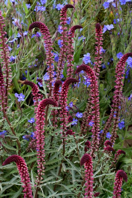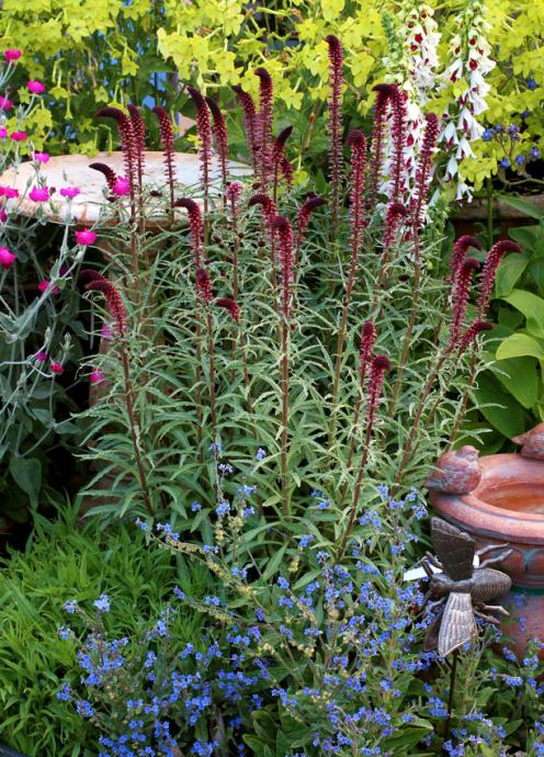 Uspravna, i čvrsta trajnica vinsko crvenih cvjetnih klasova na dugim, tankim stabljikama.