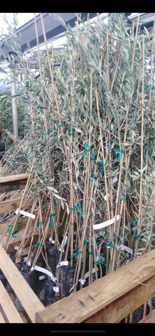 Sadnice maslina, u vrećici, s bambusovim štapom.