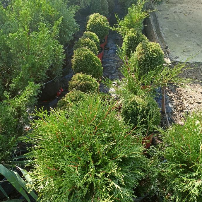 Thuja teddy guste kompaktne,okrugle krosnje ,koristi se za manje vrtove,kamenjare.Naraste max.cca 80 cm.Sporog je rasta i ne zahtjeva puno njege i nije potrebno šisanje,orezivanje .