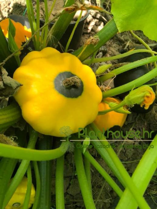 Patišon tikvica formira svoje vriježe, a bere se nakon tri mjeseca. Sije se u svibnju izravno u zemlju, u 'kućice' razmak oko 50 cm, ne treba oslonac jer biljka ne formira vriježe.