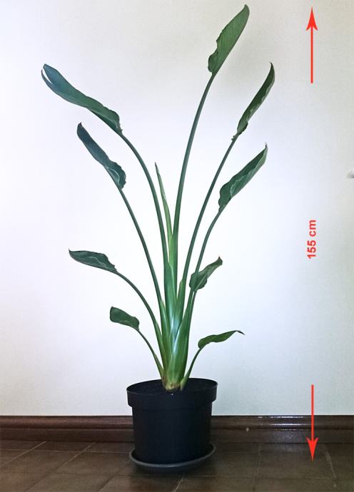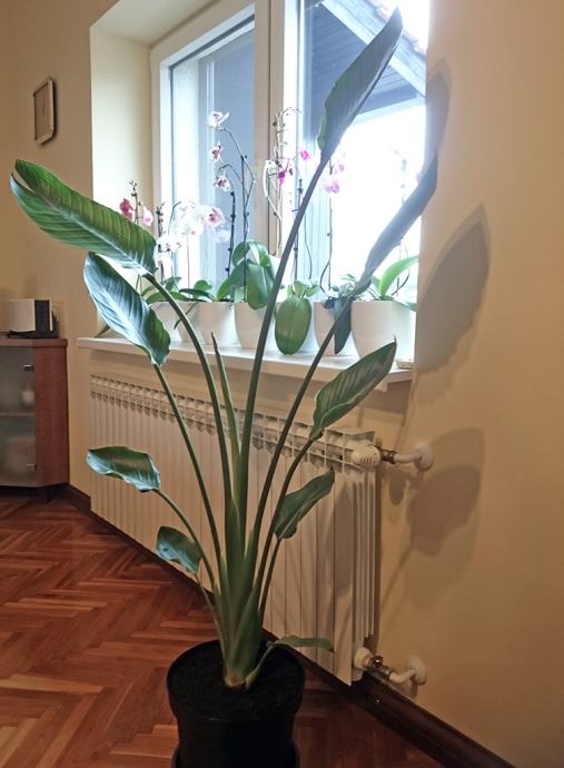 Ova moja Sterlitzia uzgojena je iz sjemena (Austrija) i stara je 5 godina. Trenutna visina 185-200cm. Do sada je jednom cvala, ali se cvatnja s obzirom na starosnu dob, očekuje ponovno uskoro.