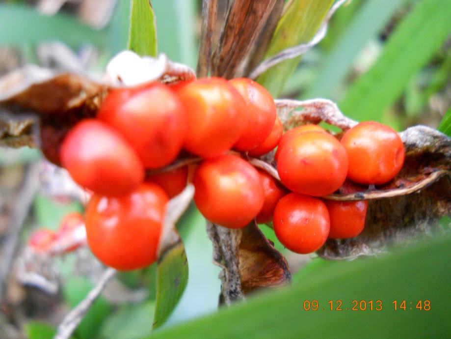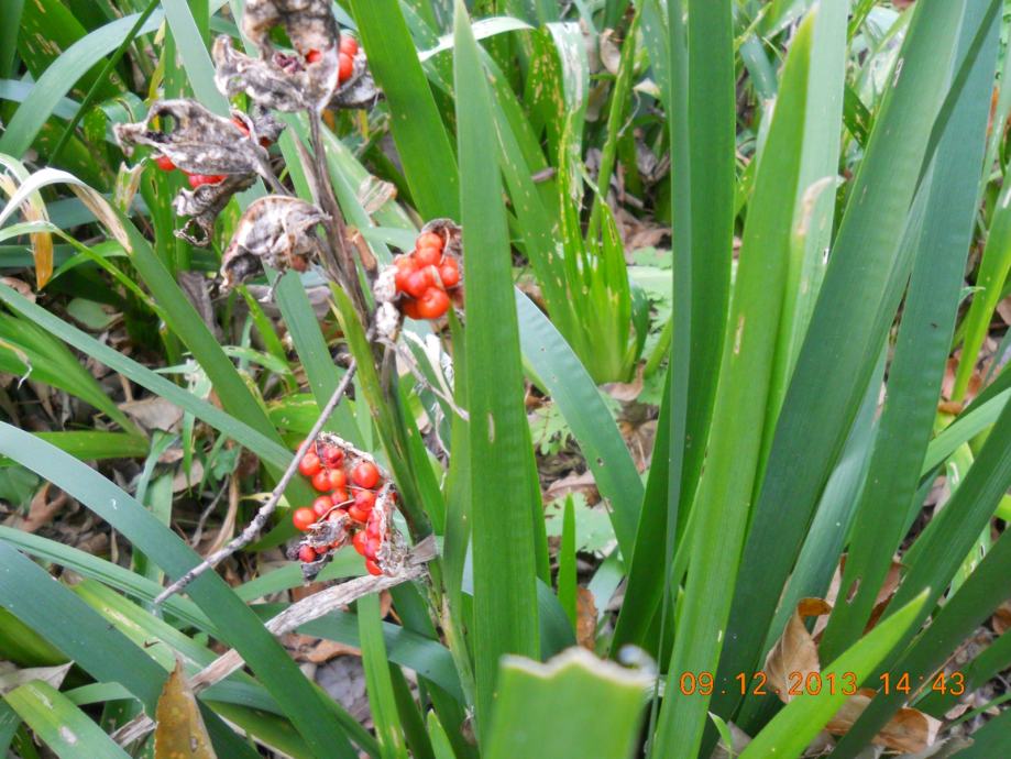 Iris FOETIDISSIMA je iris čiji listovi uvjek ostaju zeleni. Nije kao kod ostalih irisa da preko zime izgube lišće. Cvate smeđe-ljubičastim cvijetovima u lipnju i srpnju. Nakon cvatnje ima ukrasne plodove narančaste boje. Biljka sa cvijetom je visoka do cca 60cm. Podnosi izrazito niske temperature i do -15C.