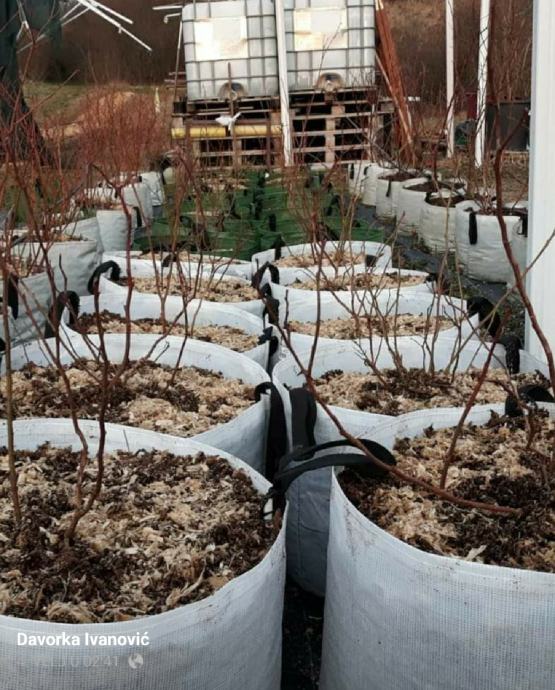 Prodajemo sadnice američkih borovnica ( dvogodišnje, razne sorte). U ponudi imamo sadnice u zračnim kontejnerima - ( 46 l) - 22 eura ( bijele boje) i u vrećama od agrotekstila ( 47,5 l ) - 22eura