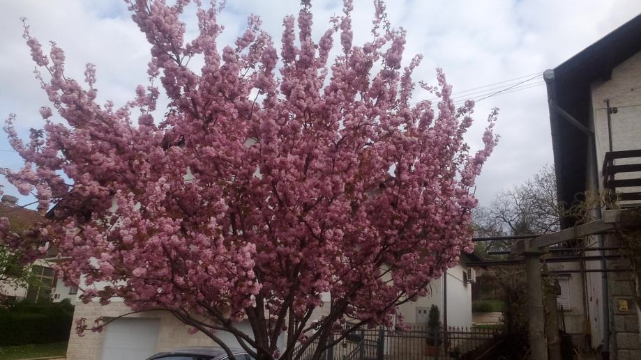Japanska trešnja je ukrasno drvo koje cvate u proljeće i obično to bude prije početka listanja. Ovo drvo bude prepuno roza cvijetova kao što se vidi na slici.