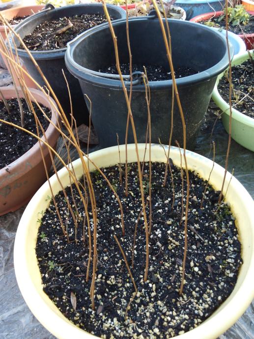 Sve sadnice sam prebacio iz pojedinačnih kontejnera u velike posude gdje ih raste više zajedno. Time si olakšavam održavanje (rasušivanje korijenja, korovi, otpalo lišće, puževi i sl.), korijen raste bolje i na sve strane (ne dolazi do usukivanja, odnosno kružnog rasta korijena što smeta kasnijem rastu presađene sadnice), a sadnice pružaju više zaštite jedna drugoj (npr. od jakog sunca).