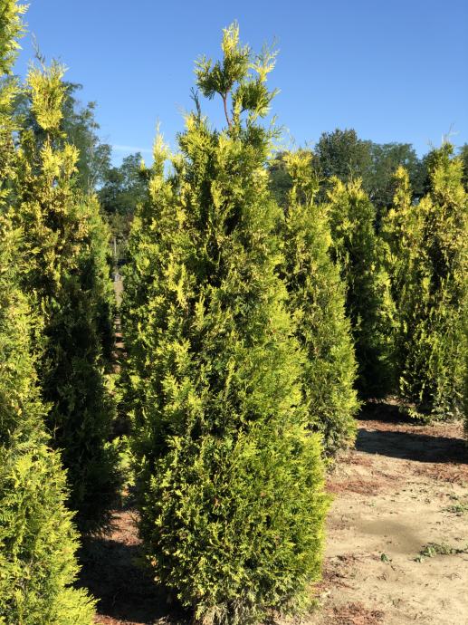 OPIS: Odlična sorta koju karakterizira brz rast i stupoliki habitus. Odrasli primjerak naraste do 5 m visine. Ima kratke grane sa zlatno-zelenim listovima ugodnog mirisa. Najbolje uspijeva na prosječno kiselim tlima. Preferira vlažna tla i osunčane ili blago sjenovite prostore. Karakterizira ju vrlo visoka otpornost na mraz. Izvrstan je materijal za živicu. Biljke se sade na udaljenost 0,8-1 m jedna od druge.