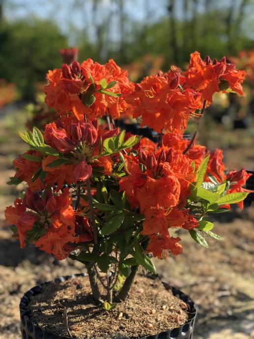 Opis: Azalea 'Gibraltar' je listopadni grm poznat po svojim jarko narančastim cvjetovima u obliku trube koji cvjetaju u kasno proljeće, često prije pojave lišća.To je popularan Exbury hibrid, cijenjen zbog obilnog cvjetanja i otpornosti. Cvjetovi su naborani, a neki mogu imati žutu mrlju. 'Gibraltar' je relativno nezahtjevan za održavanje, preferira kiselo tlo i uspijeva na suncu ili u djelomičnoj sjeni. Obično doseže visinu od 1,2-1,8 metara i širinu od 0,9-1,5 metara. Preferira djelomičnu sjenu ili filtrirano sunce, iako može podnijeti i puno sunce. Uspijeva u dobro dreniranom, kiselom tlu. Blago mirisni cvjetovi, privlače oprašivače poput kolibrića i leptira. 'Gibraltar' je popularan izbor za obrube, šumske vrtove i mješovite zasade. Također je poznat po tome što ne zahtijeva puno održavanja i relativno je otporan na bolesti.