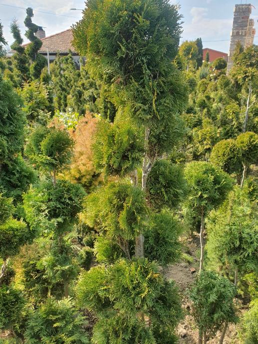 Prodajem topiarije starosti 3 do 10 godina visine 1m do2m pogodne za vrtove i terase sadnjom u posude. Rado ću dati savjete za održavanje, šišanje biljaka koje kupite. BILJKE su kvalitetne jer su iz vlastitog uzgoja i nalaze se u zemlji na vanjskim površinama te su aklimatizirane na sve teže vremenske uvjete i otpornije prilikom presadnje.
