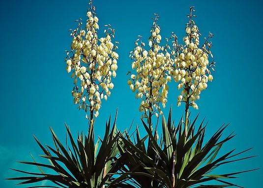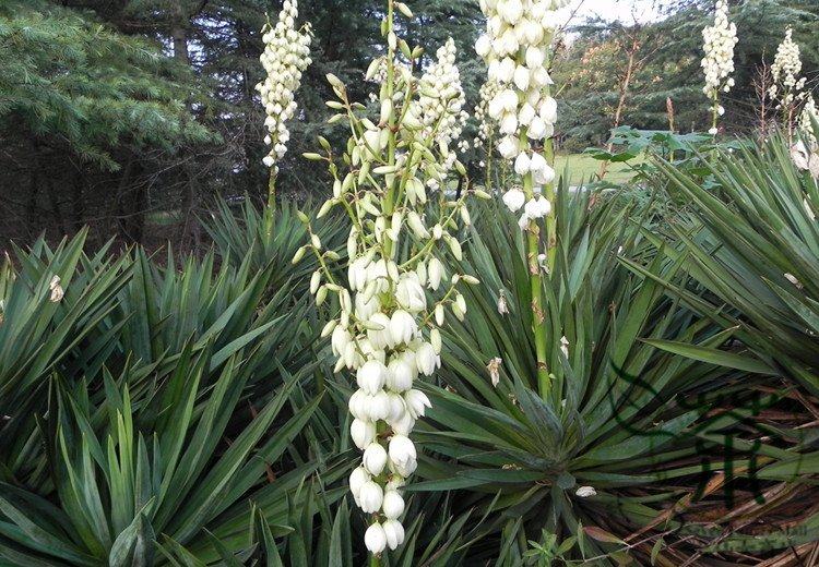 Cvjetovi su bijeli, oblika zvonca, obojeni ružičastom bojom puti izvana. Blago mirišu, ali se taj miris osjeti više noću. Vlakna ove biljke koriste se za izradu odjeće, užadi, košara i prostirača. Juka se presađuje obično svake treće godine u travnju ili listopadu. Mladi zakorijenjeni izdanci trebaju ostati u klijalištu od jedne do tri godine prije nego što se sade na stalna mjesta. U početku polagano rastu. Suhe listove juke treba odrezati.