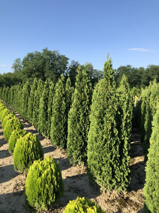 Prodajem RAZLIČITE vrste tuja, čempresa, juniperusa i tisa - sporo, srednje i brzo rastućih, visina sadnica 180-230 cm.