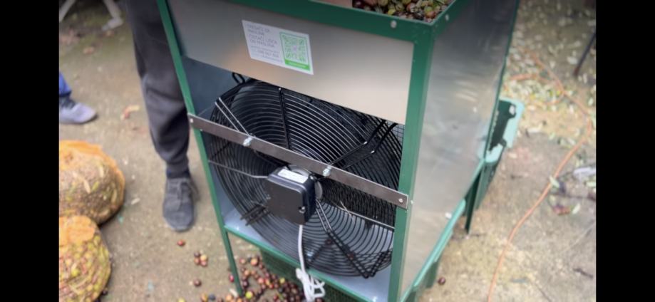Stroj jednostavno postavite iznad prazne. Snažan ventilator će odvojiti lišće i grančice od maslina, a čiste masline će pasti u čistu košaru.