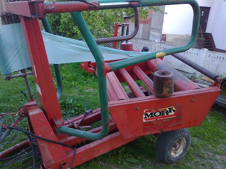 Omotač rolo bala MORRA,stražnji utovar i istovar pomoču dvije hidro ruke(zato ne probuši balu jer ju lagano spusti na zemlju),folija 500mm,široke gume,vučeni a može biti i nošeni samo se makne rudo-takav je tvornički.Ovijač je odličan! CIJENA JE U EURIMA!!!