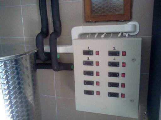 Glavni upravljački ormar sa 6 elektronskih termostata za upravljanje temperature za svaki spremnik posebno