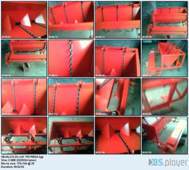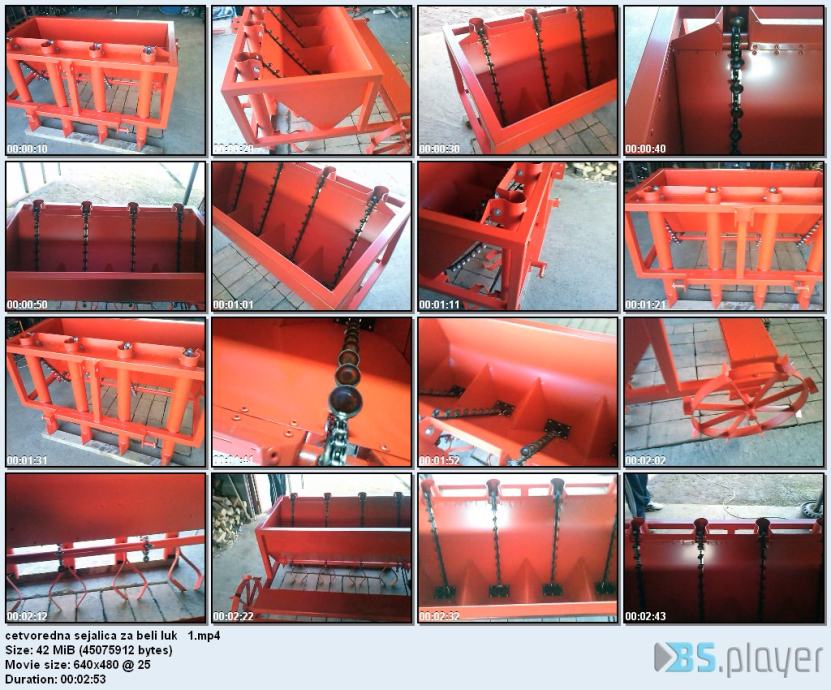 arpadžik i beli luk iz sandučeta za seme preko beskrajnog lanca sprovodnika i raoničkog ulagača dolaze i padaju, klize do zemlje. Sejalica omogućava preciznu setvu u redove.