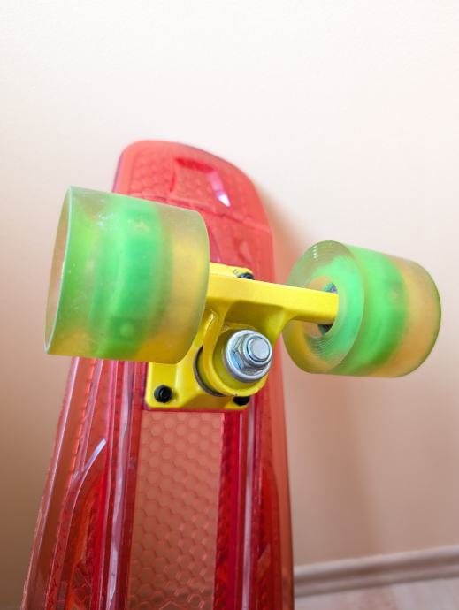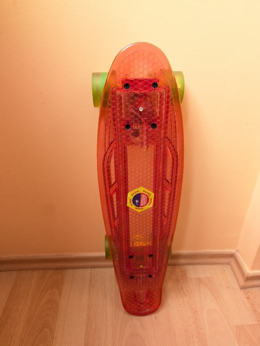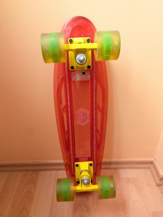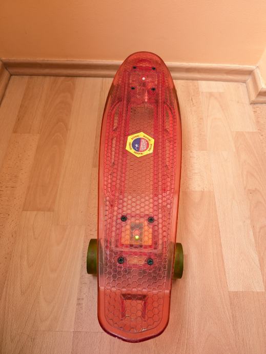 Dječji skejt skateboard koji svijetli, unisex boja, može biti za dječake i za djevojčice, svijetli kad se vozi, kratko isproban, korišten, nije nov.