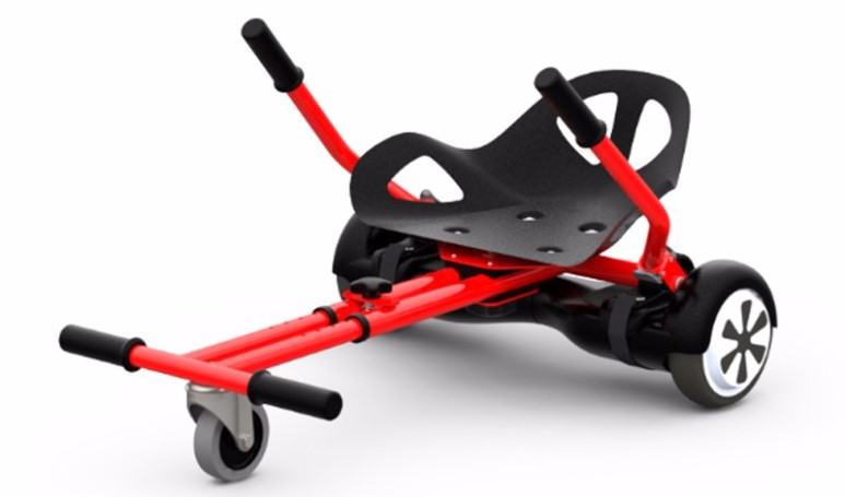 Hoverkart go kart,dodatak,sjedalo za 6-10 incha hoverboarde, izrađen od karbona i čelika crne boje, visine 25 cm, širine 61 cm, dužine 80-104 cm. S ovim dodatkom možete transformirati svoj hoverboard u jednostavni Go-Kart.