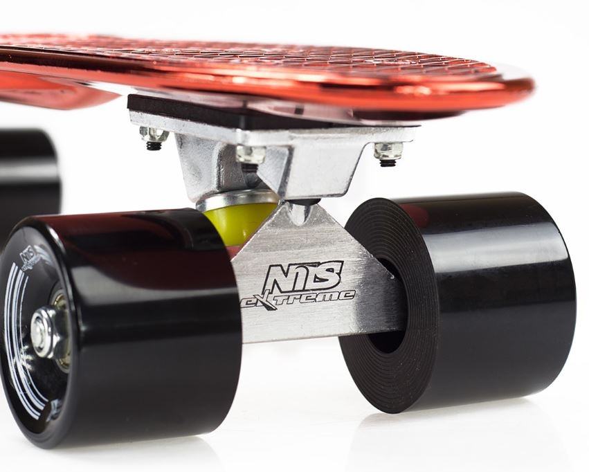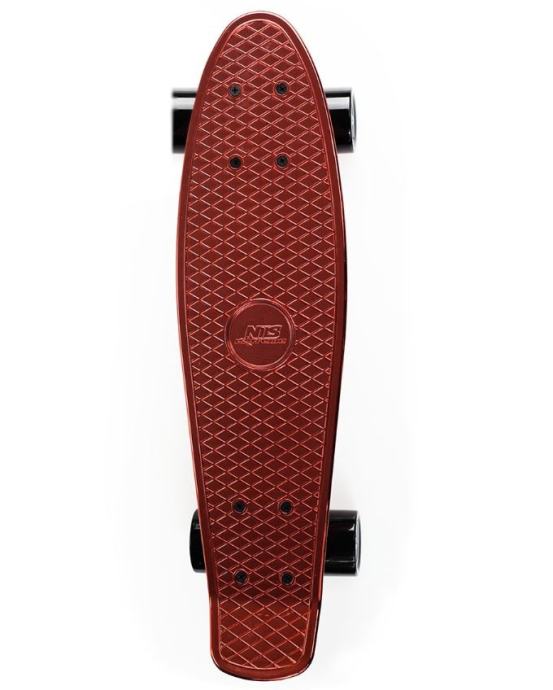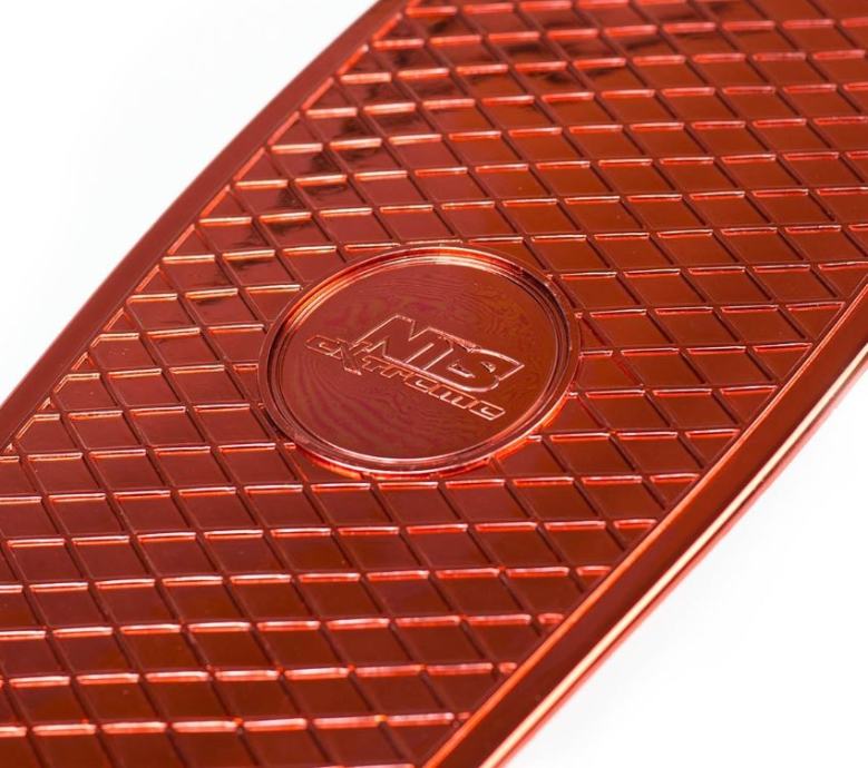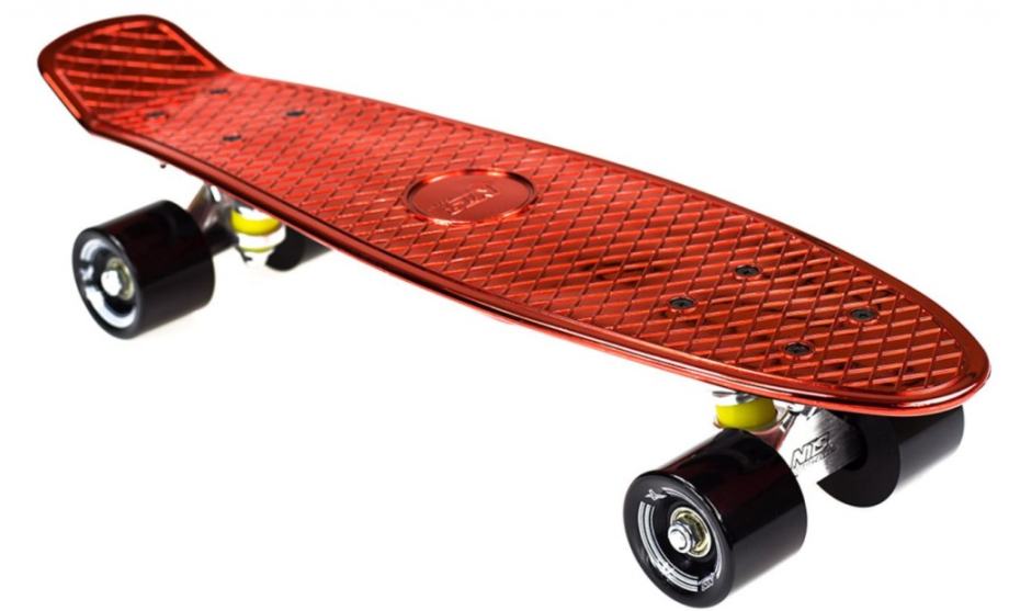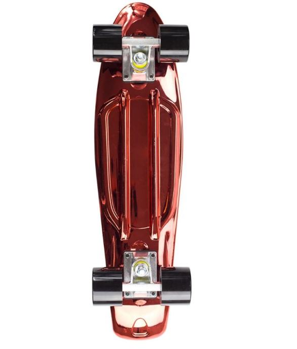 Penny skateboard s inovativnom metalik crvenom bojom. PP je jači materijal od šperploče od onog koji je tipičan za ostale skejterske daske. Penny je opremljen poliuretanskim kotačima, koje odlikuju visoka otpornost na abraziju i vibracije. Za upotrebu do 100 kg težine za korisnike svih uzrasta.Ležajevi: ABEC7Osovine: ojačani, polirani aluminijDimenzije: 56 x 14 cm Neklizajuća površinaStražnja strana ploče je savijenaMaterijal ploče: polipropilen (PP), jaka gusta plastikaPU kotači 60 x 45mm, tvrdoća 78ADozvoljena težina: 100 kgTežina: 2,2 kg