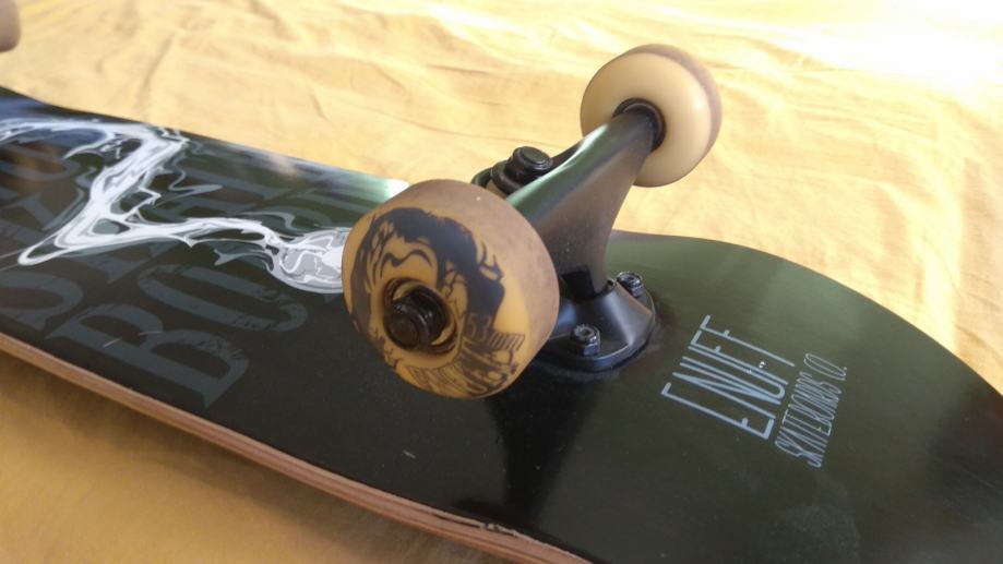 Prodajem rabljeni skateboard, 3 put vožen, odustajem od vožnje jer nisam dovoljno hrabar, sa skateom je sve u redu, kupljen je za 800kn. Uz njega dajem i štitnike za koljena, laktove i zapešća. Obradujte svoje dijete ili sami sebe. Budite hrabriji nego ja. Više o samom skejtu možete pronaći ovdje: https://www.enuffskateboards.com/product-page/pyro-ii-1