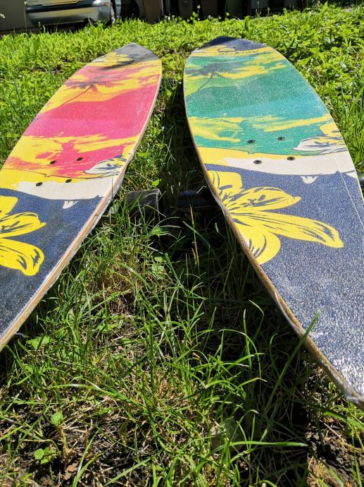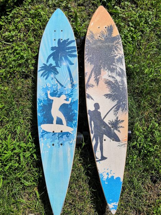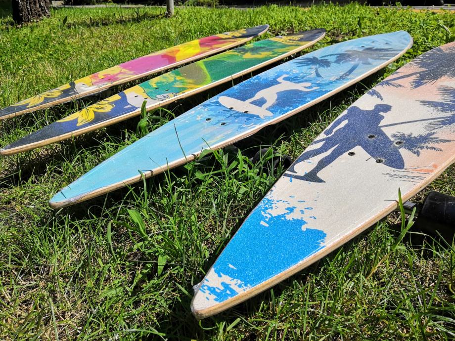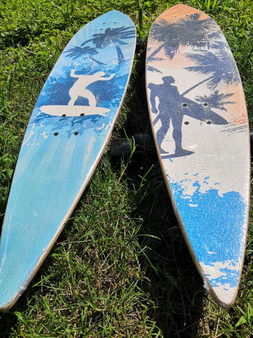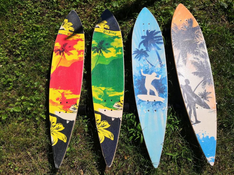 U ponudi su skateboardovi u različitim motivima, duzine 117 cm. Potpuno su novi, nekorišteni i zapakirani. Riječ je zapravo o modelima „Surf-skate“ (long board). Slicne skateboarde mozete vidjeti na iducim linkovima koji su mnogostruko skuplji….