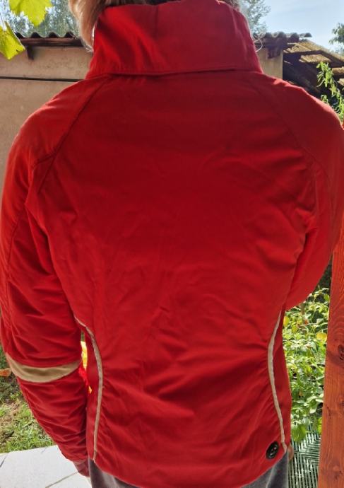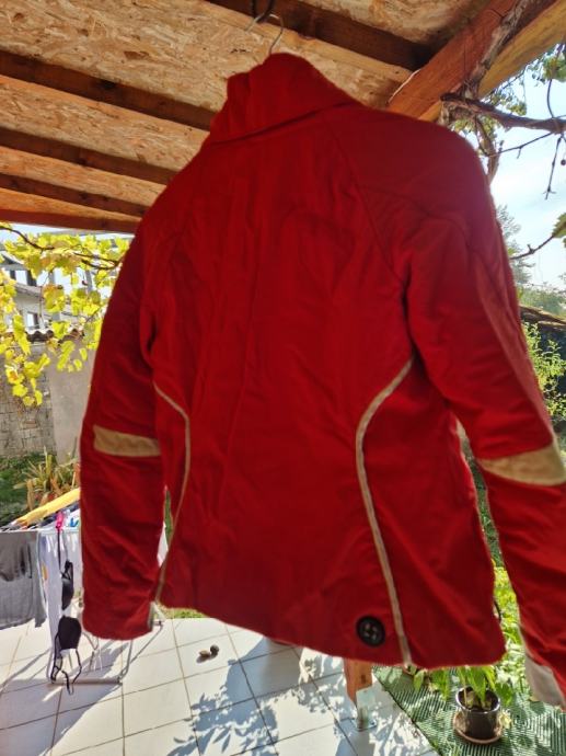 Prodajem crvenu sa krem detaljima orginalnu žensku Colmar skijašku jaknu (sa hologramom) br. 42 - za visinu 168-174 cm. Jakna je strukirana, ima odvojivu kapuljaču sa bočnim i stražnjim zatezačima te odvojivi unutarnji ovratnik. Vodonepropusnost i zračnost je 20.000 k. Ima dva bočna vanjska džepa (jedan sa kvačicom za rukavice ili krpicu za naočale), džep na rukavu za ski pass, unutarnji džep sa zipom i jedan džep sa zipom u međuprostoru između vanjskog i unutarnjeg dijela jakne . U rukavima ima dodatni produžetak (manšetu) za zaštitu od ulaska snijega. U unutarnjem dijelu je silikonski dodatak koji sprečavanje ulaska snijega u jaknu te zadržava toplinu. Ispod pazuha se nalaze odzračnici, a sa unutarnje strane jakne integrirani toplomjer.