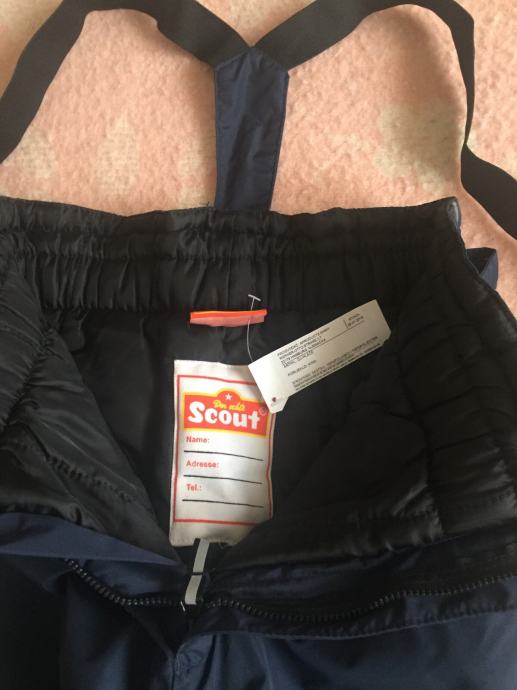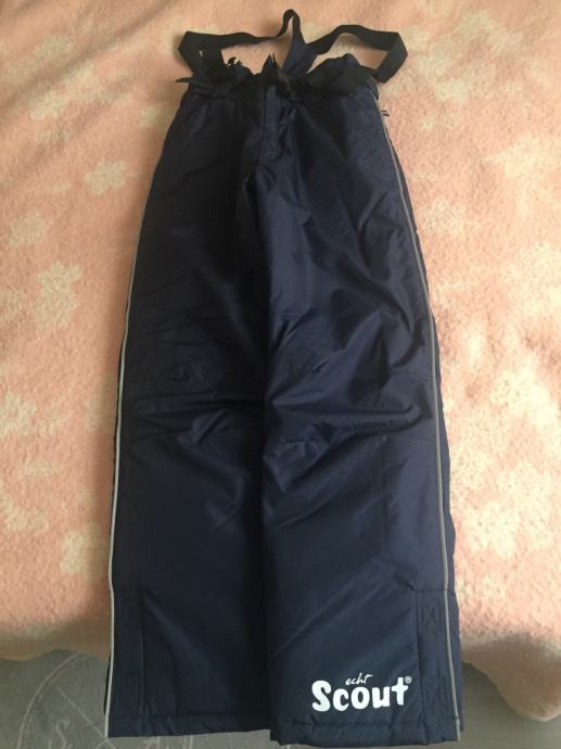 Skijaške hlače Scaut tamno plave s naramenicama veličina 140 za cca. 10 god. nove nikad obučene uslijed C19 dijete preraslo.