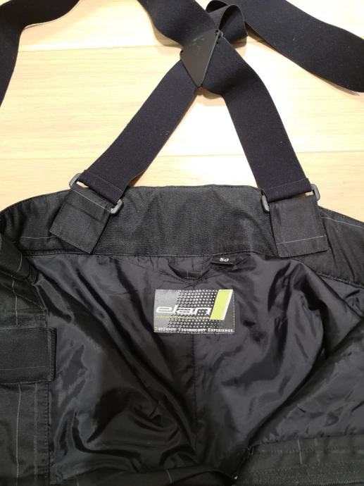Skijaške hlače sa elastičnim pojasom u struku (na čičak), sa tregerima.