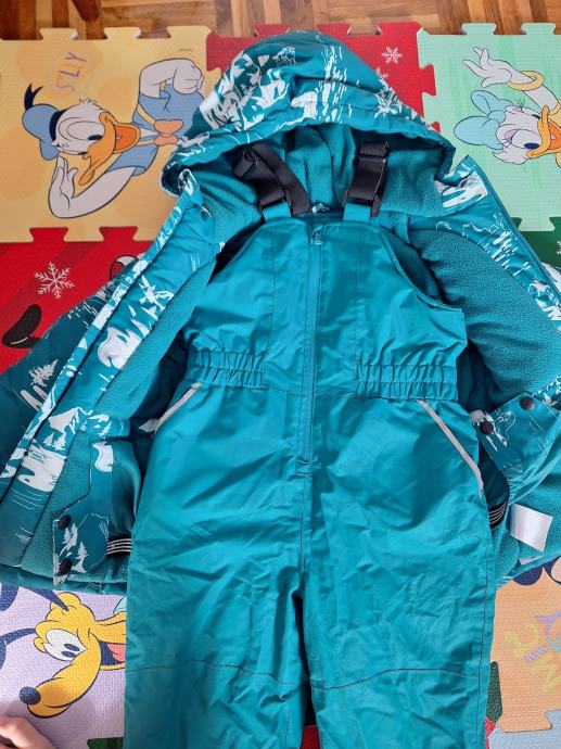 Prodajem ski skafander za dječake u veličini 110/116. Skafander je tirkizne boje s bijelim printom. Ima kapuljaču, zipere na rukavima, te praktične džepove. Hlače imајu elastični pojas i pojačanja na nogama. Topao i funkcionalan za skijanje i zimske aktivnosti.
