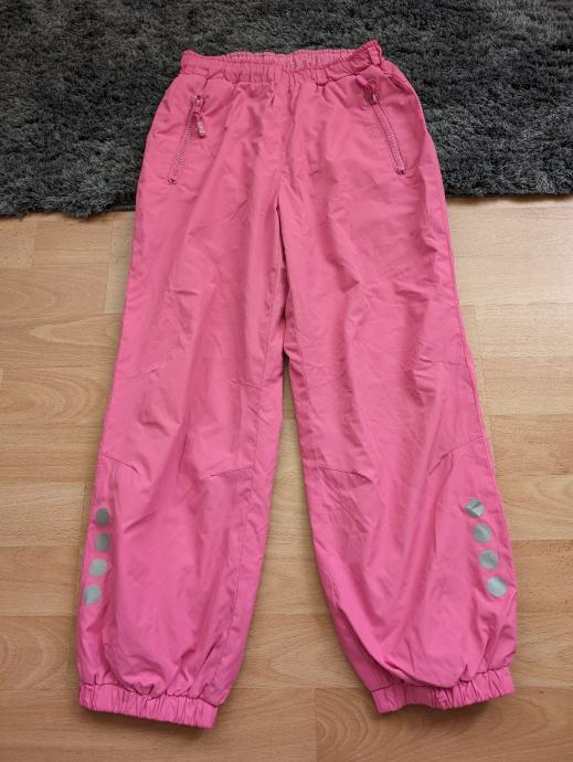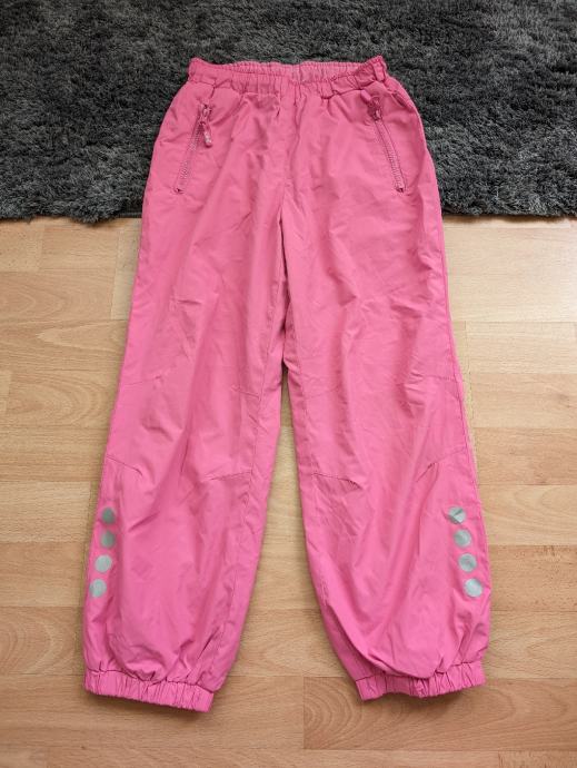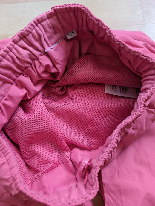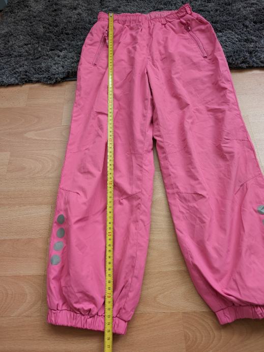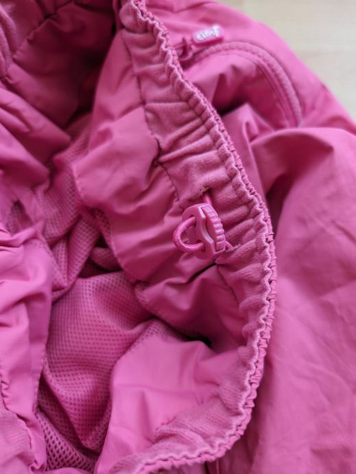 Skafander hlače br. 122 za djevojčice, tanke, nisu one deblje za jako hladne dane niti za skijanje, roze boje, s dva džepa naprijed, s reflektirajućim oznakama, mogu se suziti u struku, idealne za preko tajica kad se ide van na igru, na sport, na neko planinarenje zimi i sl.