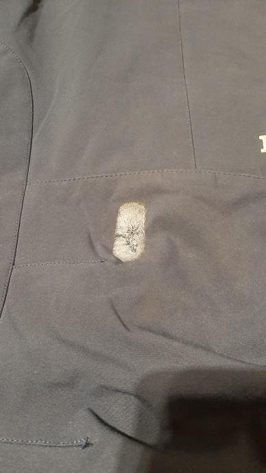 Na lijevoj nogavici manja zakrpa (vidljivo na slici).