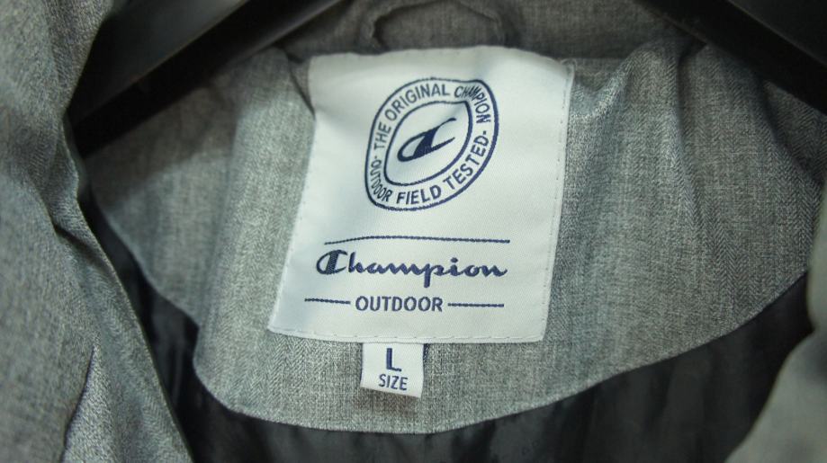 CHAMPION JAKNA LARGE, punjena, nije pre debela nesto je izmedzu. Sive boje, mekana na dodir skoro kao samt, nepropusna.