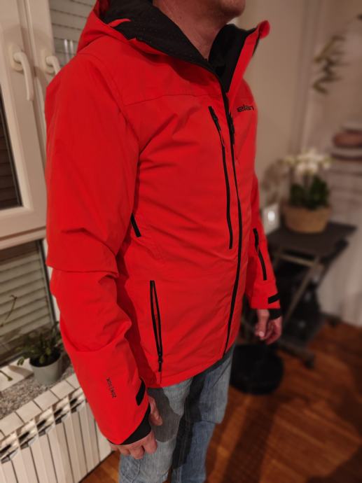 Opremljena podesivom kapuljačom i uskim, elastičnim manžetama, zaštitnom suknjom za snijeg i džepom za skijašku karticu. S izolacijskim punjenjem od 40% vune i 60% recikliranog poliestera, vodootpornošću od 20.000 mm i prozračnošću od 30.000 mm
