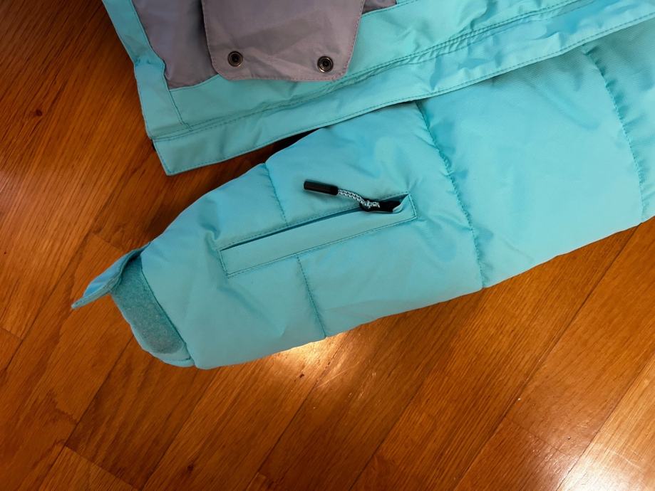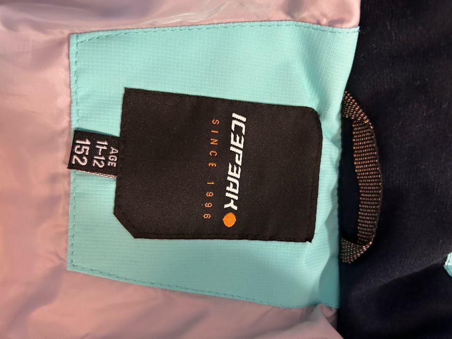 Prodajem dječju skijašku jaknu marke Icepeak u tirkiznoj boji, veličine 152, za 11-12 godina. Jakna je kao nova, potpuno čista, nošena jedanput 5 dana, jako topla i ima praktičnu kapuljaču za maksimalnu zaštitu od hladnoće. Džep na rukavi za ski kartu, unutarnji džepovi za kapu i mobitel