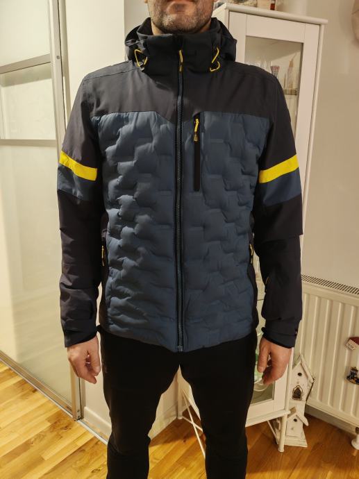 Prodajem skijašku jaknu Icepeak veličine 50 (M), modernog dizajna s crno-plavim uzorkom i žutim detaljima. Jakna ima praktičnu kapuljaču i više džepova, idealna za zimske sportove i skijanje.